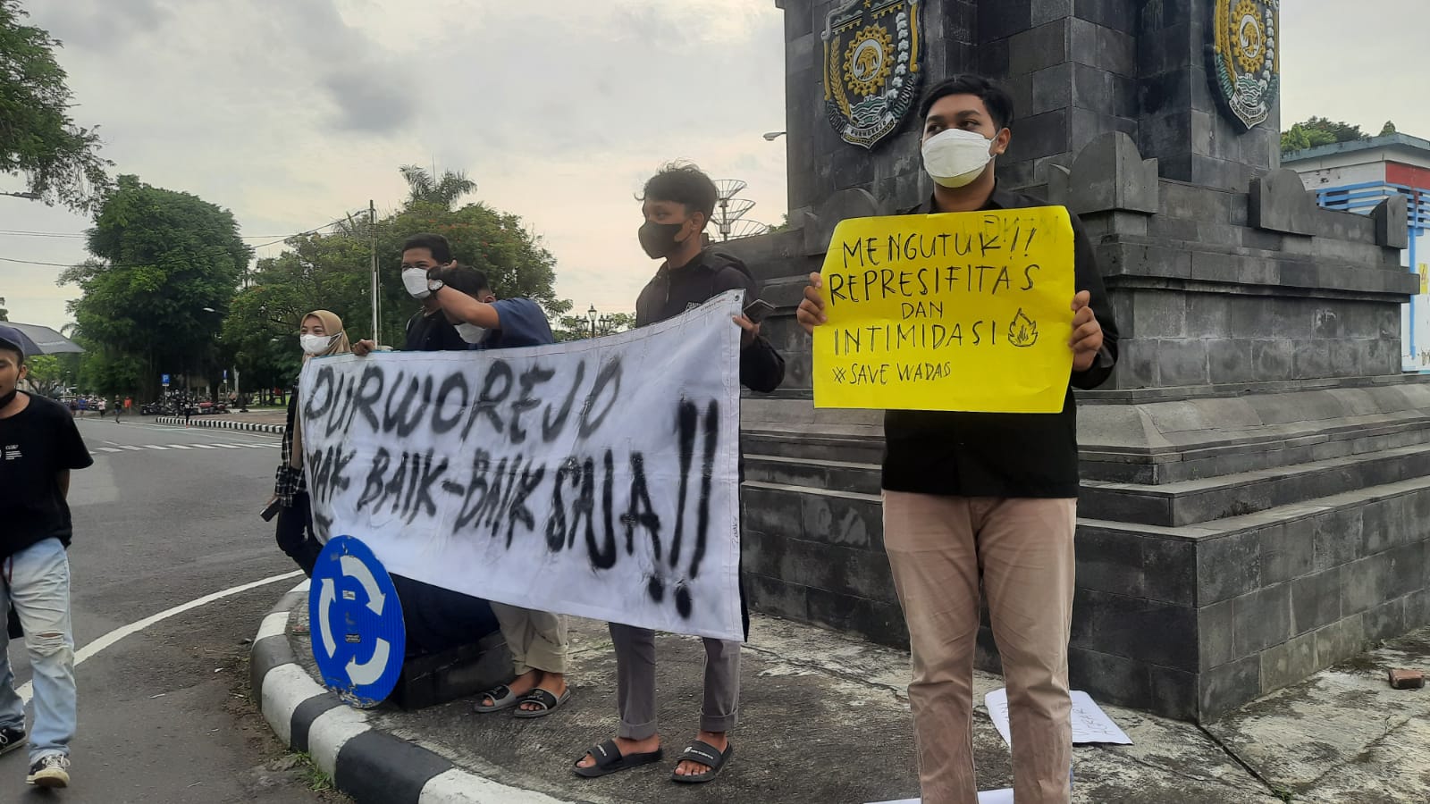 “Kami mengutuk keras tindakan represif berupa teror maupun intimidasi terhadap warga Desa Wadas yang terus berjuang mempertahankan tanah milik mereka sendiri,” ujar Rojul dalam orasinya.