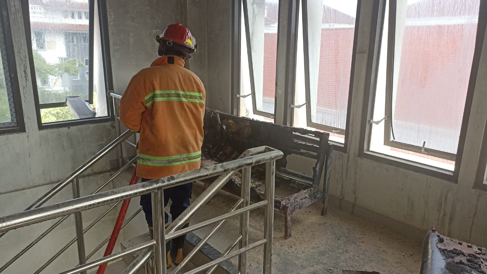 Dikatakan, pada sayap itu terdapat 2 kursi panjang yang tercatat asetnya Dinas PTMPTSP. walaupun itu sebenarnya bukan tempat istirahat melainkan tangga yang menghubungkan antar lantai di gedung ini tetapi di tempatkan 2 kursi dan ada kardus sampah. Karena tempat sampah berbahan kardus kertas, sehingga memicu terjadinya ketika ada yang membuang puntung rokok yang masih nyala.